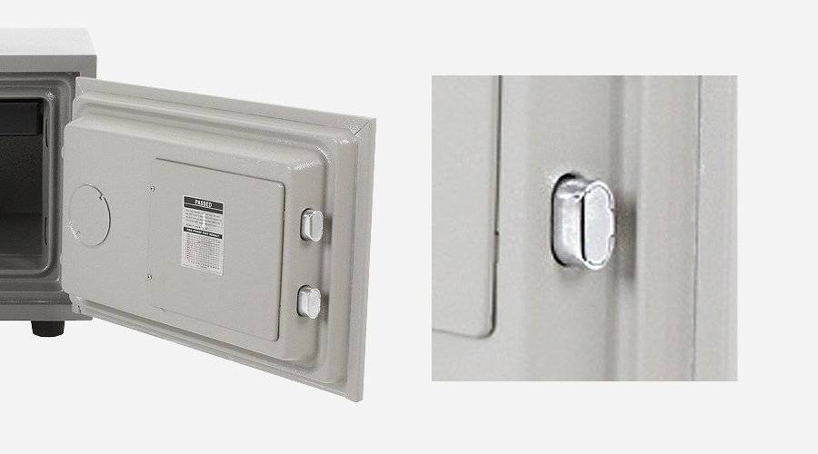 [แนะนำ] สลักกลอนทำหน้าที่ยื้อประตูให้ติดกับตัวตู้เมื่อตู้เซฟถูกงัด ต้องทำจากวัสดุที่ทนแรงงัดได้ดีและจำนวนยิ่งมากยิ่งดี |