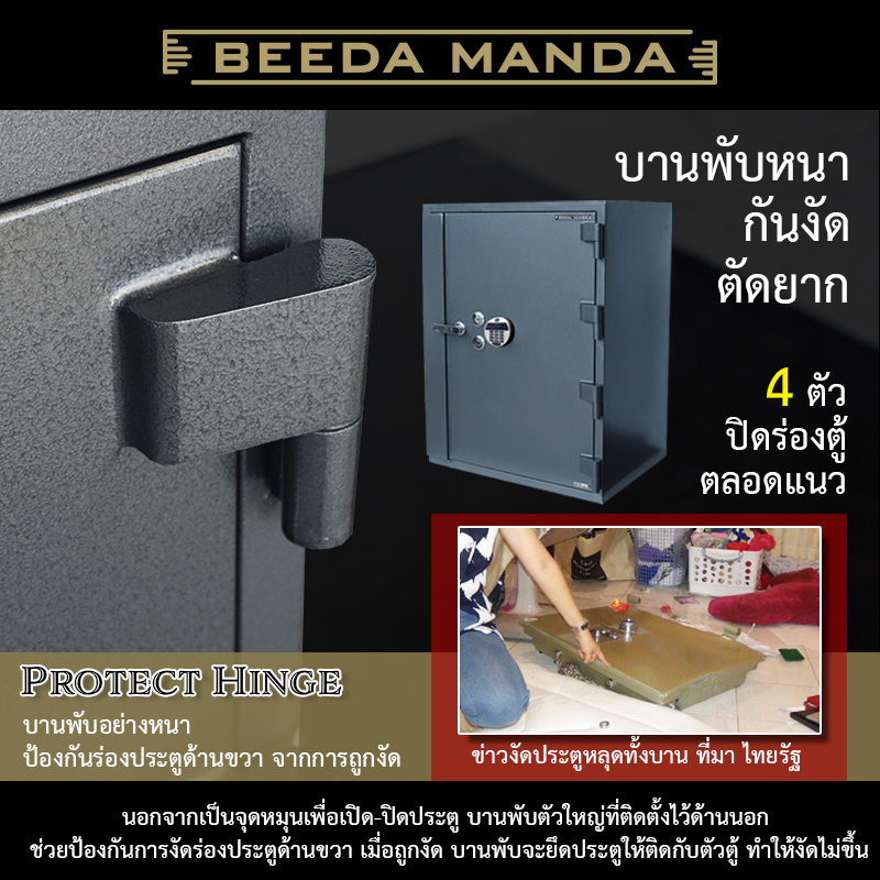 - มีโล่กันงัด Protect Sheild ปกป้องร่องประตูด้านซ้ายจากการถูกงัด (ตำแหน่งที่โจรงัดตู้เซฟ อันตรายที่สุด)