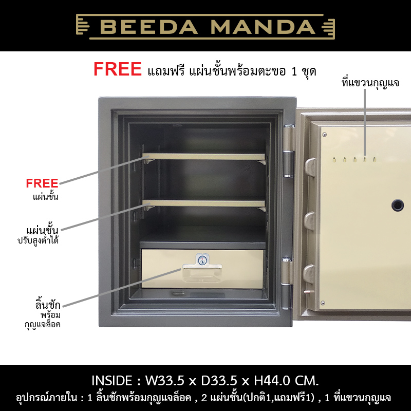 อุปกรณ์ภายใน : 1 ลิ้นชักมีกุญแจล็อค / 2 แผ่นชั้น