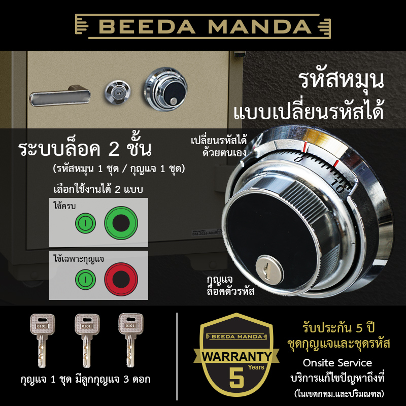 - รหัสหมุน 1 ชุด / กุญแจ 1 ชุด (ลูกกุญแจ 3 ดอก/ชุด)