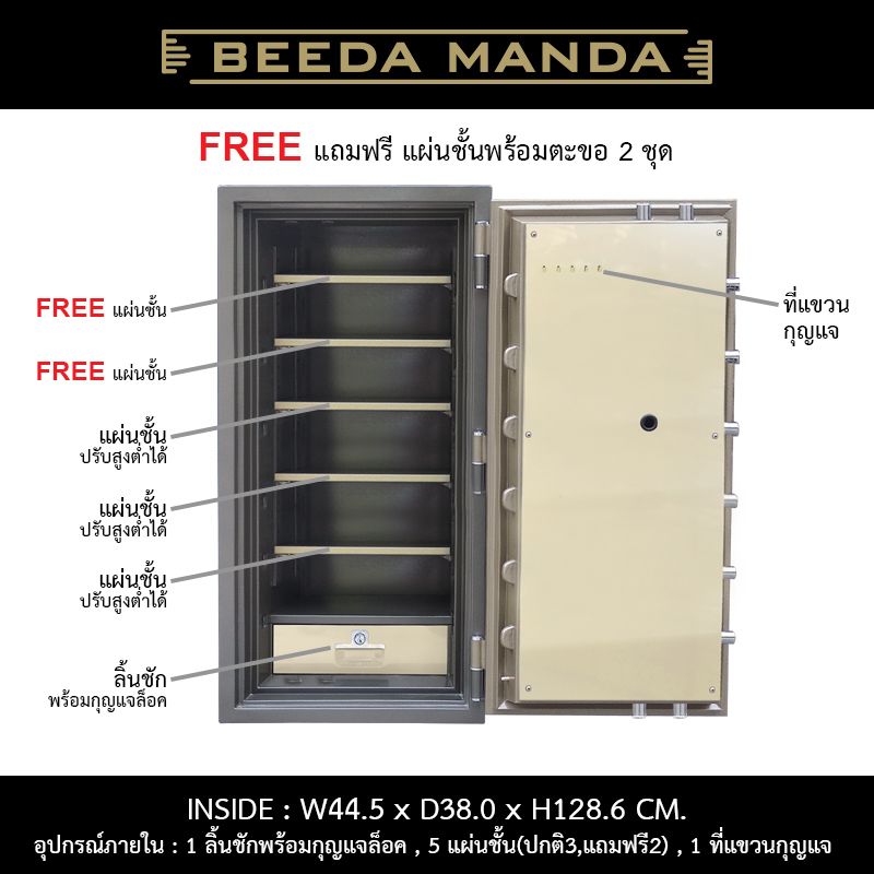 อุปกรณ์ภายใน : 1 ลิ้นชักมีกุญแจล็อค / 5 แผ่นชั้น