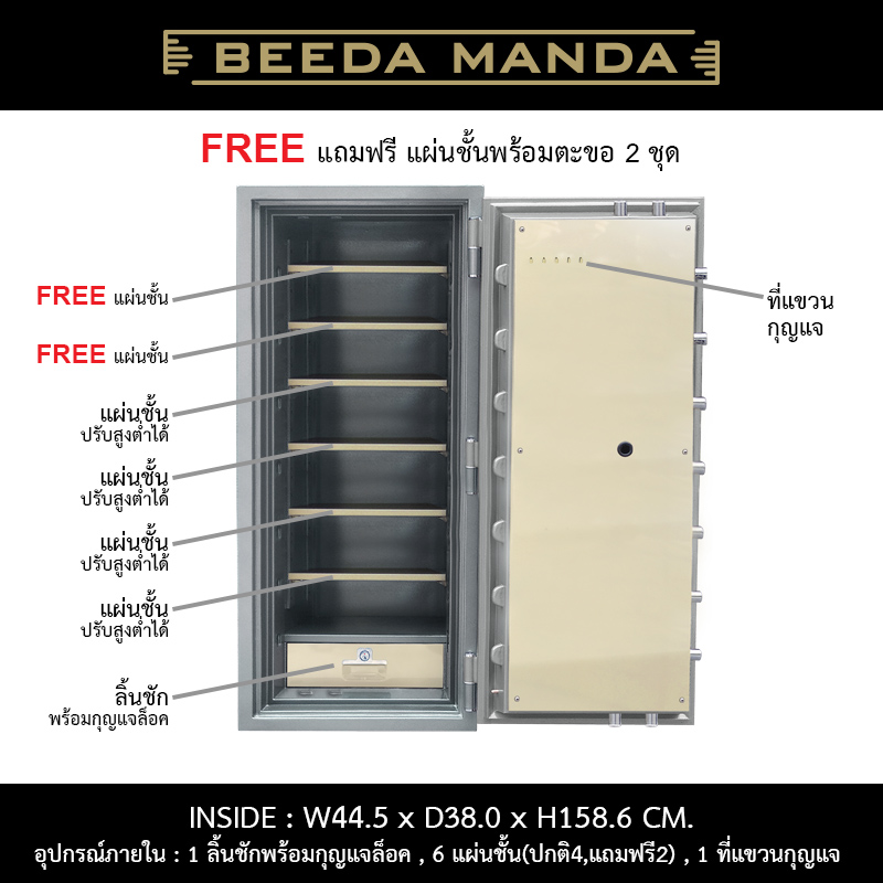 อุปกรณ์ภายใน : 1 ลิ้นชักมีกุญแจล็อค / 6 แผ่นชั้น