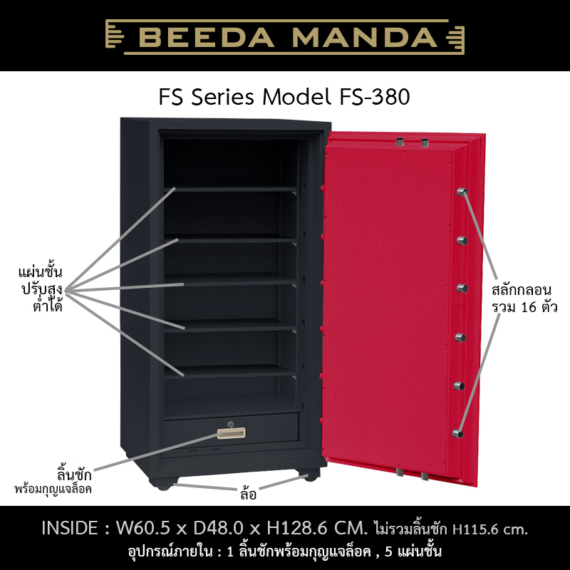ตู้เซฟกันไฟ แบรนด์ BEEDA MANDA รุ่น FS-380-C มีล้อ