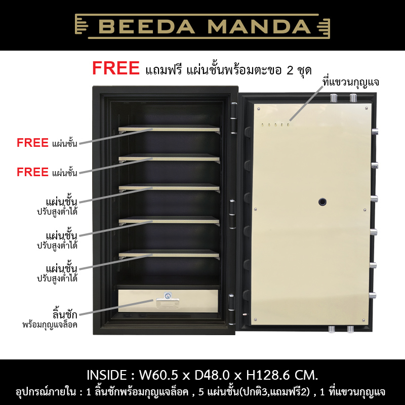 อุปกรณ์ภายใน : 1 ลิ้นชักมีกุญแจล็อค / 5 แผ่นชั้น