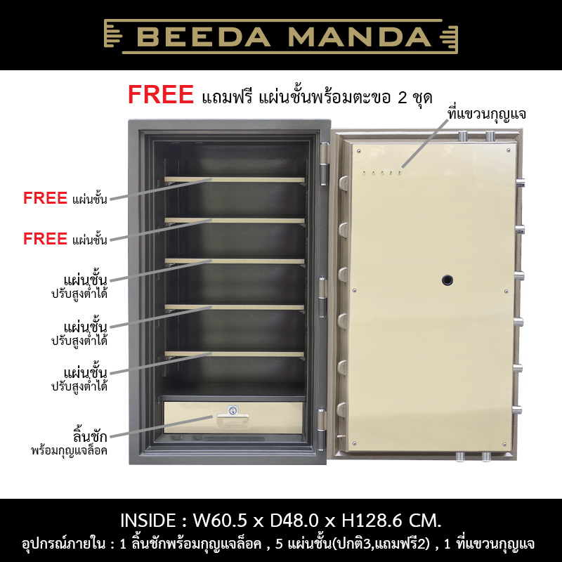 อุปกรณ์ภายใน : 1 ลิ้นชักมีกุญแจล็อค / 5 แผ่นชั้น