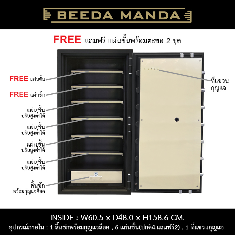 อุปกรณ์ภายใน : 1 ลิ้นชักมีกุญแจล็อค / 6 แผ่นชั้น