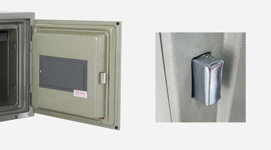 [แนะนำ] สลักกลอนทำหน้าที่ยื้อประตูให้ติดกับตัวตู้เมื่อตู้เซฟถูกงัด ต้องทำจากวัสดุที่ทนแรงงัดได้ดีและจำนวนยิ่งมากยิ่งดี |