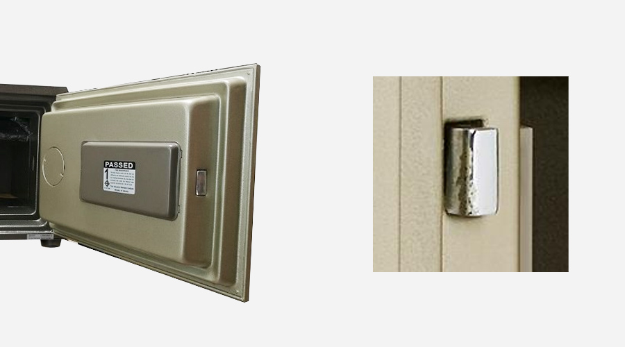 [แนะนำ] สลักกลอนทำหน้าที่ยื้อประตูให้ติดกับตัวตู้เมื่อตู้เซฟถูกงัด ต้องทำจากวัสดุที่ทนแรงงัดได้ดีและจำนวนยิ่งมากยิ่งดี |