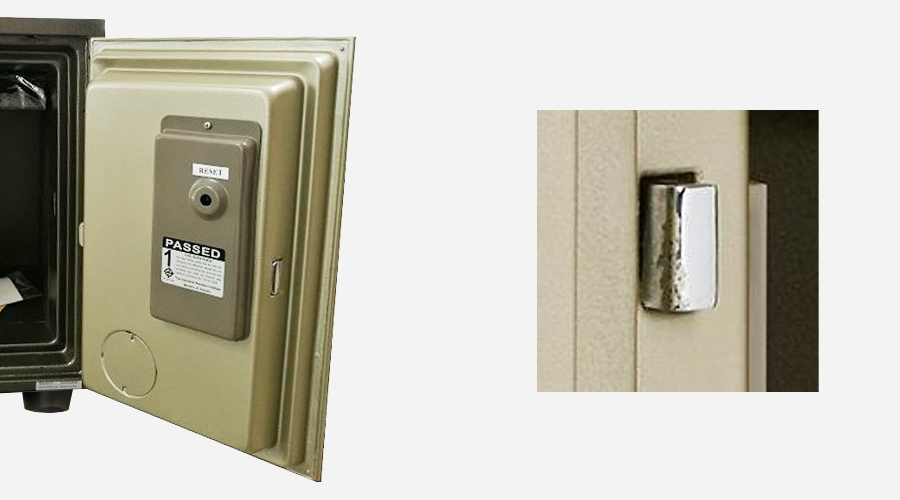 [แนะนำ] สลักกลอนทำหน้าที่ยื้อประตูให้ติดกับตัวตู้เมื่อตู้เซฟถูกงัด ต้องทำจากวัสดุที่ทนแรงงัดได้ดีและจำนวนยิ่งมากยิ่งดี |
